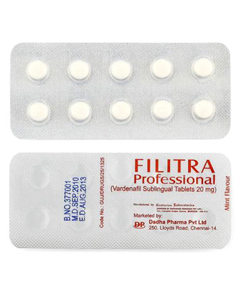 - Filitra Professionale è destinato al trattamento della disfunzione erettile. Il farmaco agisce come inibitore della fosfodiesterasi di tipo 5, aumentando il flusso di sangue al pene.